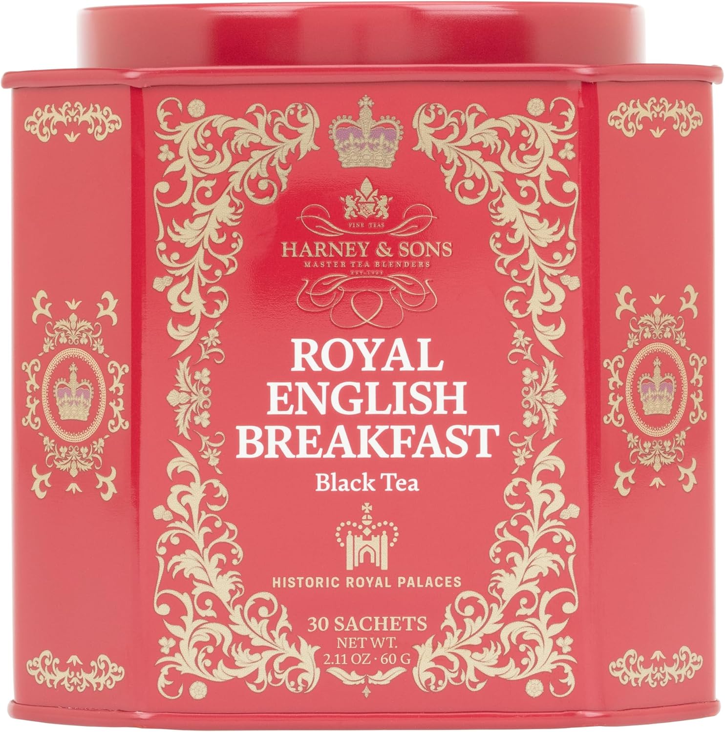 Harney & Sons Royal English Breakfast is one of the teas in the Historic Royal Palaces Collection. It is a robust combination of Kenilworth Ceylon and Kenyan Milima black teas that makes a smooth, full-bodied brew. The traditional, brisky morning tea brew is here for you. Milk and sugar please.